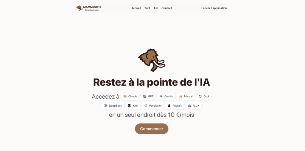 C’est l’argument commercial central de Mammouth AI : un abonnement unique remplace plusieurs souscriptions individuelles. Pour les professionnels qui utilisent régulièrement plusieurs IA, le gain financier peut être substantiel. L’offre d’entrée de gamme est accessible dès 10 euros par mois.