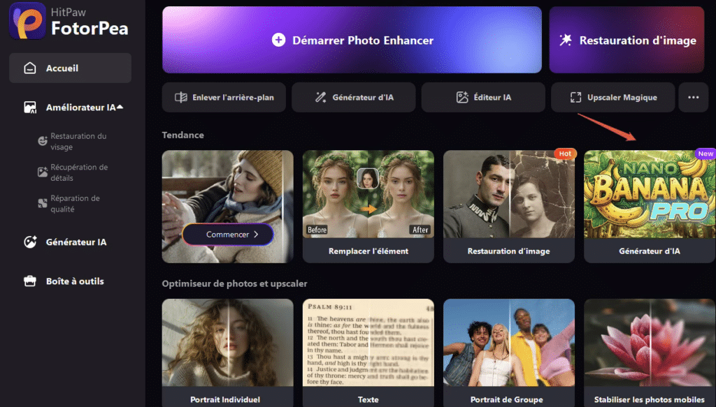 Dans la suite, nous allons vous expliquer comment utiliser efficacement Nano Banana Pro sur HitPaw FotorPea, afin de créer facilement des images de haute qualité et des créations créatives.
