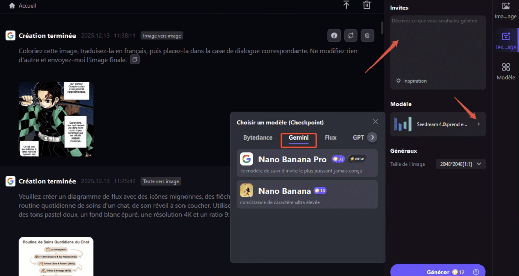 Appliquer le modèle Nano Banana Pro : Appliquer directement les modèles pour générer des images de haute qualité en un clic.