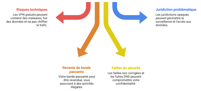 Au-delà des limitations fonctionnelles, les VPN gratuits dangereux présentent des risques techniques documentés qu’il convient d’analyser objectivement.
